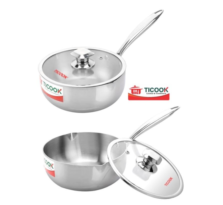 | CHẢO INOX 304 BA LỚP NẮP KIẾNG ĐÁY TỪ CÁN ĐÚC MIỆNG RÓT SHMO 16cm |